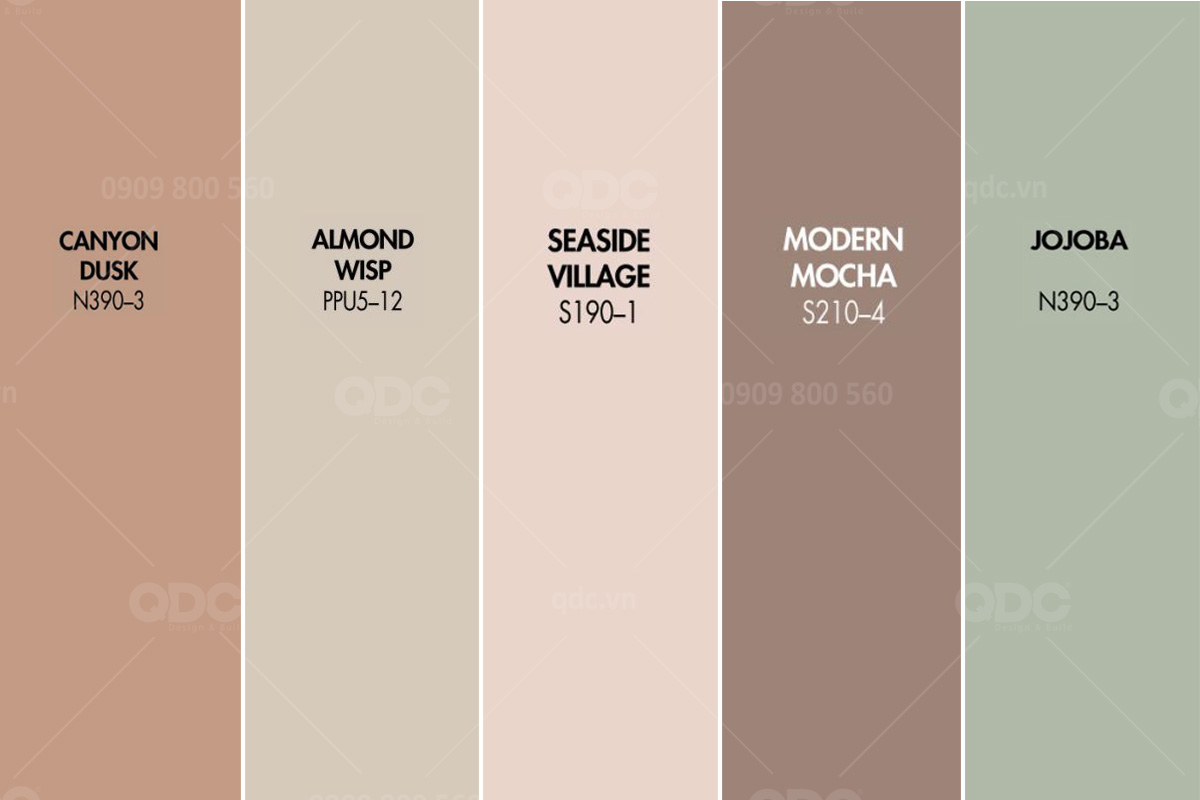 Mindful Escape sẽ là một trong những xu hướng màu sắc lớn nhất của năm 2021. Như chính tên gọi, Mindful Escape sở hữu những gam màu trung tính, mang sắc nhạt và đậm tính thiền tạo sự an yên cho thực khách khi bước vào những không gian tô điểm bằng bảng màu này. Những màu trong nhóm Mindful Escape bao gồm: nâu hồng Canyon Dusk, trắng kem Almond Wisp, xanh nhạt Jojoba, hồng nhạt Seaside Villa, nâu cà phê Modern Mocha.